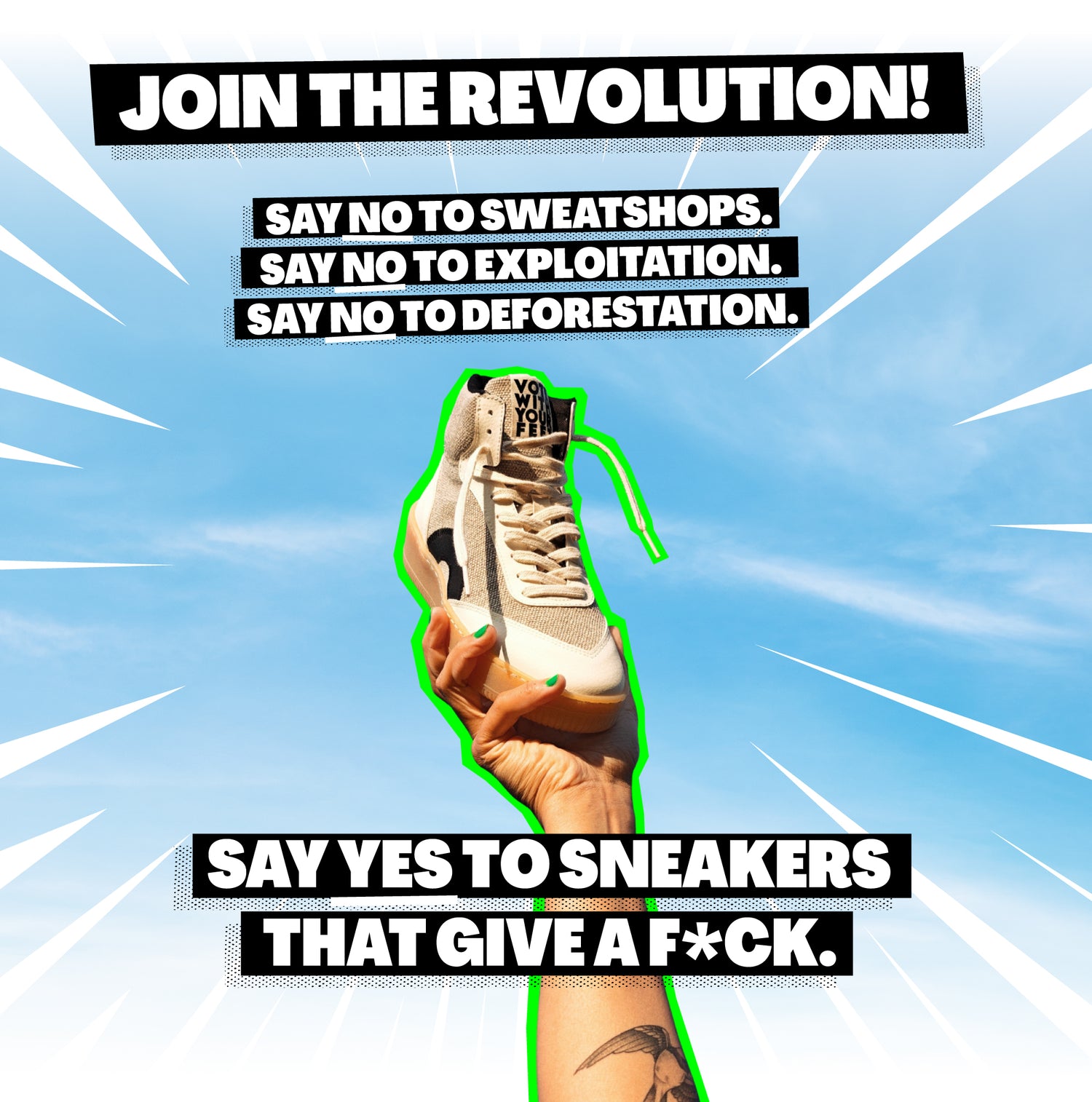 That’s why we say no to leather and no to animal cruelty. Just badass, plant-based kicks made with compassion for Planet Earth and all life on it.